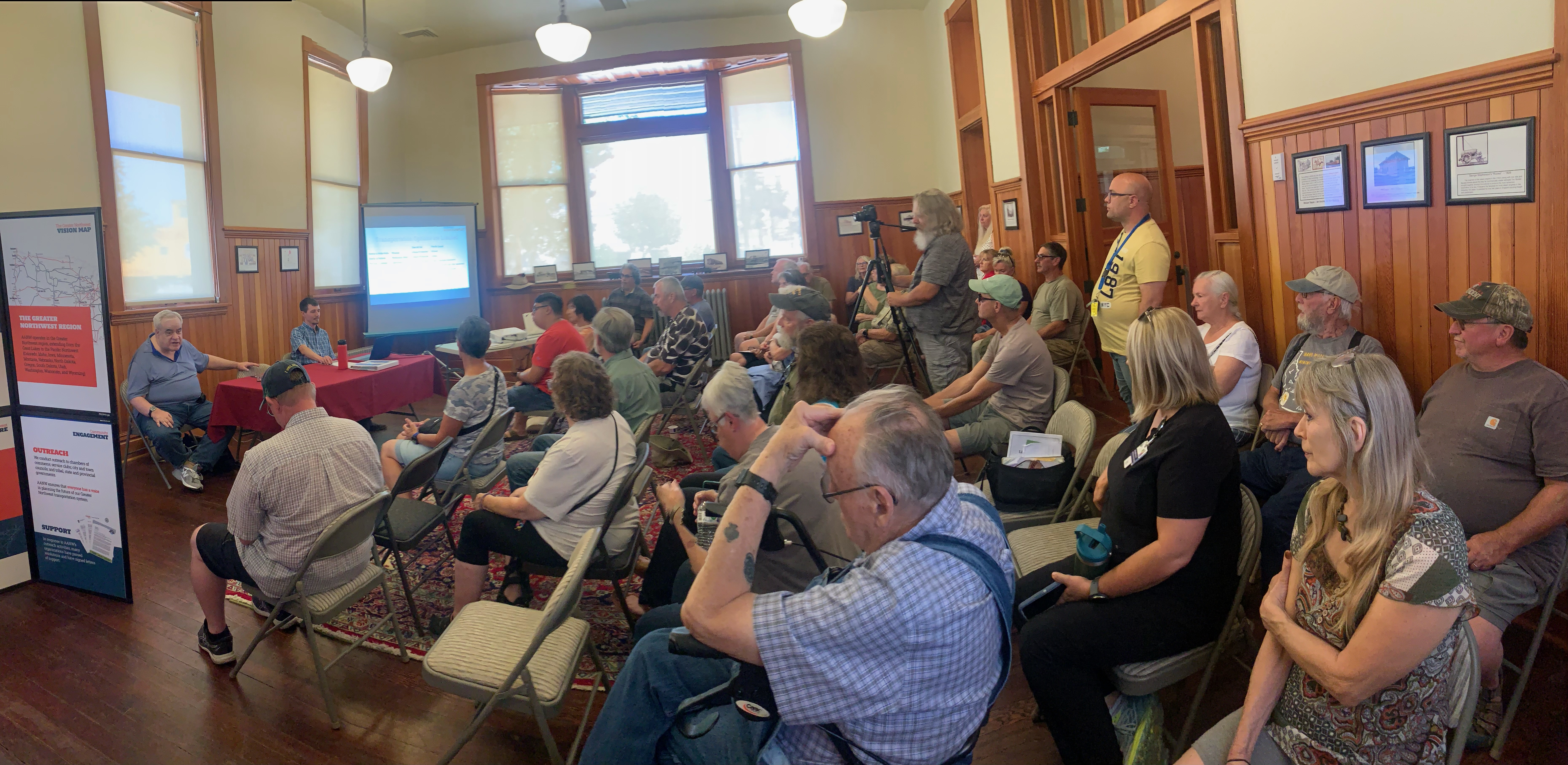 Last week’s All Aboard Northwest organization’s Train Trek meeting was presented to nearly 50 gathered residents on July 22, in the bottom floor of the Carnegie Art Center.
